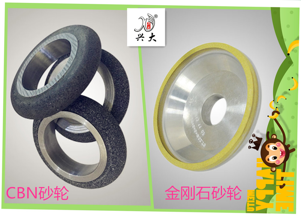 金刚石砂轮是磨削硬质合金、光学玻璃、陶瓷、宝石和石材等高硬度脆性大的非金属材料的最佳磨具。但因金刚石在700℃~800℃时容易碳化,所以它不适于磨削钢料。CBN的硬度稍次于金刚石,但它的热稳定性好(能耐1300℃~1400℃高温),它不象金刚石那样在高温中会分解,即氧化和石墨化,与铁族元素化学惰性大,热导率高(是刚玉的46倍),用其制作的砂轮寿命长(可达刚玉砂轮的几十倍到成百倍以上),是替代刚玉砂轮磨削淬硬钢、高速工具钢、轴承钢、不锈钢、耐热钢和钛合金等高硬度韧性大的金属材料的最佳磨具。